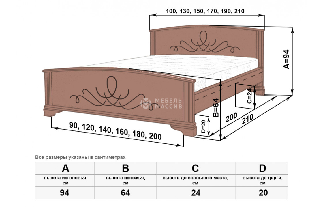 Прочная кровать Нова изготовлена из экологически чистого древесного массива. Модель имеет украшенные резьбой сплошные спинки, плавно переходящие в устойчивые ножки для защиты напольного покрытия. Изделие, которое можно купить в нашем интернет-магазине по демократичной цене, покрыто первоклассным лаком. Осуществляется доставка на дом по Барнаулу и Алтайскому краю.| Размер | Цена | |